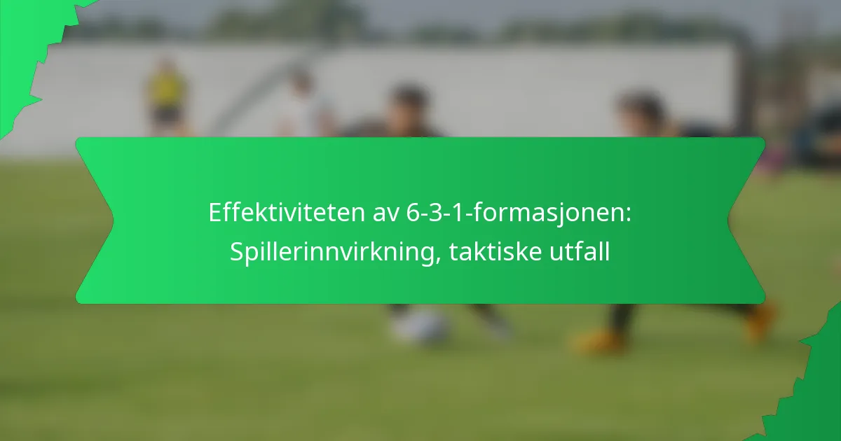 6-3-1-formasjonen påvirker spillerprestasjoner betydelig ved å legge vekt på defensiv stabilitet samtidig som den tillater en sterk kontringsstrategi. Denne oppstillingen kan forbedre individuelle spillerroller og den samlede lagdynamikken, noe som fører til bedre taktiske resultater på banen.